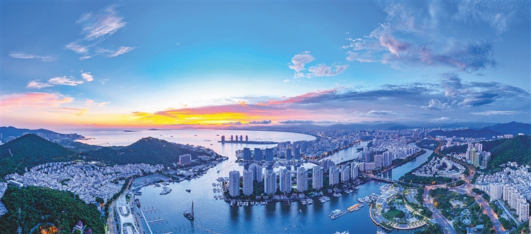近日,绚丽的晚霞“染红”三亚湾,把城市装点得更加美丽壮观。在刚刚结束的端午假期,叠加毕业季旅游热的三亚旅游市场出现客流小高峰,全市共接待游客41.22万人次,同比增长47.69%,旅游市场持续火热。图/本报记者 王程龙 文/本报记者 李艳玫