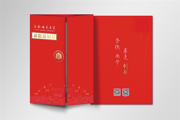 “新版录取通知书背后,寄托了学校对新生的深深期盼。”海南师范大学招生办相关负责人表示,新版通知书也像一封请柬,向四海学子发出邀请,希望新生能够从获取录取通知书的瞬间开始,融入海师这个大家庭中,在校园追逐梦想,开启新篇章。