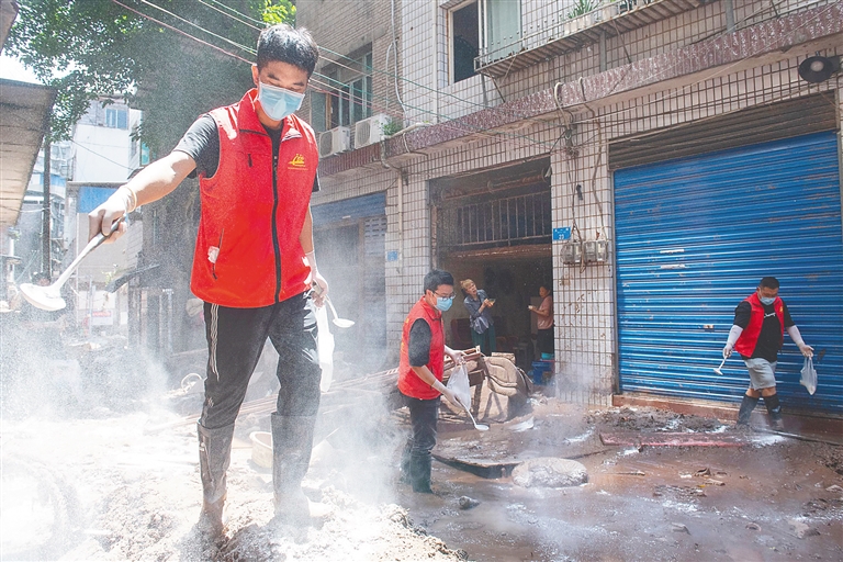 “在大家的帮助下,家里的淤泥已经基本清理完。”五间桥社区居民付兆明说,他自己也要投入到灾后重建中,帮助有需要的人,和大家一起尽快恢复正常生活。