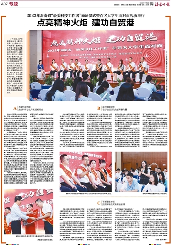 2023年海南省“最美科技工作者”颁证仪式暨百名大学生面对面活动举行~~~