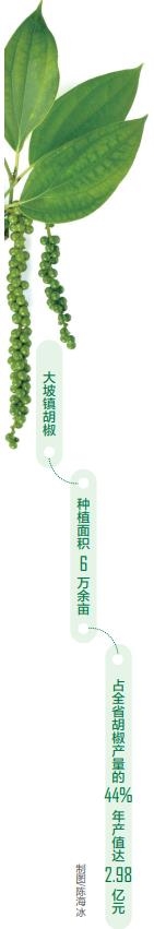 胡椒好种了,但作为经济作物,总会遇到销售难题。2018年前后,大坡胡椒遭遇到了低价,从每斤50多元跌至每斤10元。“那两年,地里到处散落着没有采摘的胡椒。”树德村的村民陈金钊称,往年依靠胡椒日子过得很红火,没承想连续两年收购价下跌,逼着他到外地谋生。