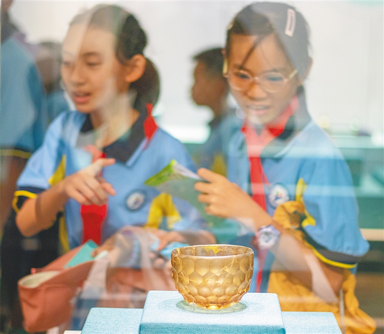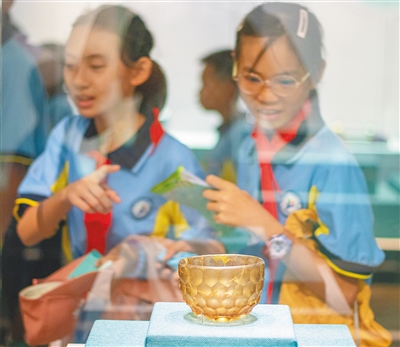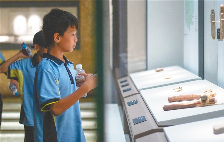7月6日,学生在省博物馆欣赏馆内不同时期的藏品。随着暑期临近,我省不少学校通过研学,让学生畅享博物馆里的文化知识,同时为学生开启寓教于乐的暑假生活。图/文 本报记者 袁琛 实习生 张赫宇