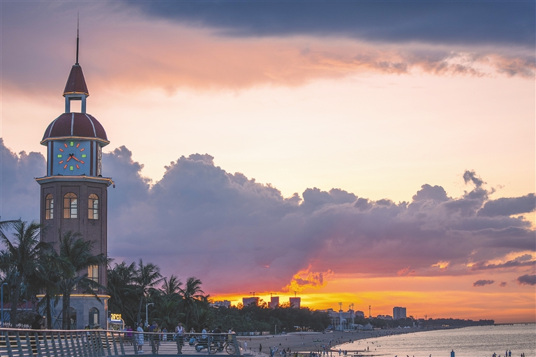 7月9日,海口市西海岸被晚霞“染红”。随着海口实施西海岸贯通更新工程,西海岸景观焕然一新,吸引众多市民游客前来游玩。该工程长约13.1公里,涵盖三道(漫步道、跑步道、骑行道)贯通、配套设施建设、生态环境整治等,为椰城市民游客再添一处休闲观光好去处。本报记者 李天平 摄