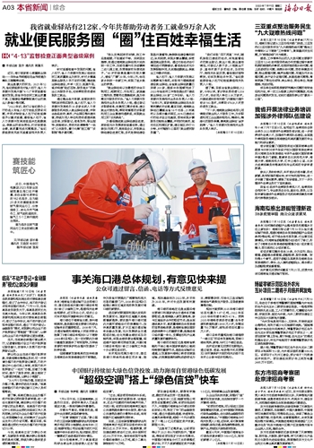 法电长丰(三亚)能源有限公司财务总监曹凌还记得,该项目刚启动不久,中国银行海南省分行便主动联系到该公司,制定了专门的金融服务方案,通过开通绿色通道、快速审批、优惠利率等举措,短短一个月内便发放了一笔2.3亿元的固定资产贷款,期限15年。