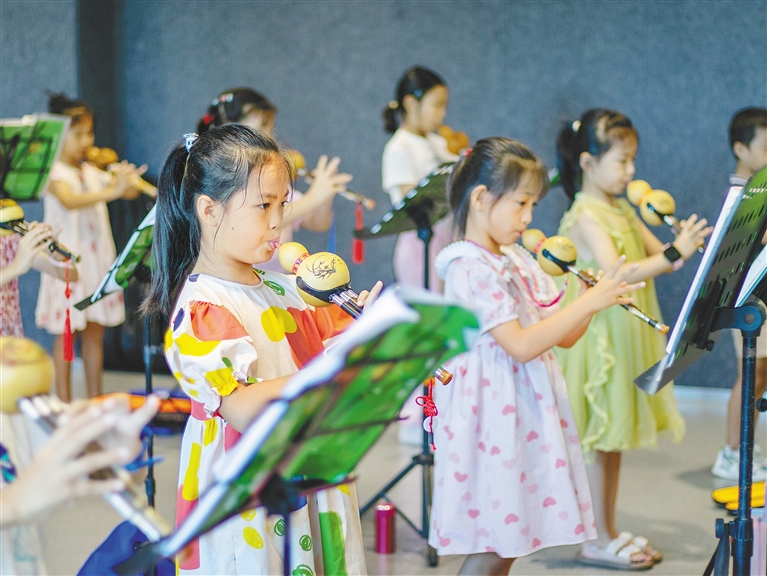近日,在海口市龙华区新时代文明实践中心,学生在上兴趣班。随着我省小学陆续放暑假,学生们通过参加器乐、舞蹈、游泳等兴趣班,为自己“充电”,充实假期生活。图/文 本报记者 袁琛 实习生 张赫宇