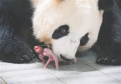 爱宝乐园介绍说,雌性大熊猫“爱宝”和雄性大熊猫“乐宝”今年2月成功交配,这是它们继2020年产下“福宝”后在韩国第二次产崽。双胞胎幼崽老大于7日4时52分出生,体重180克;老二6时39分出生,体重140克。目前母婴状况良好。