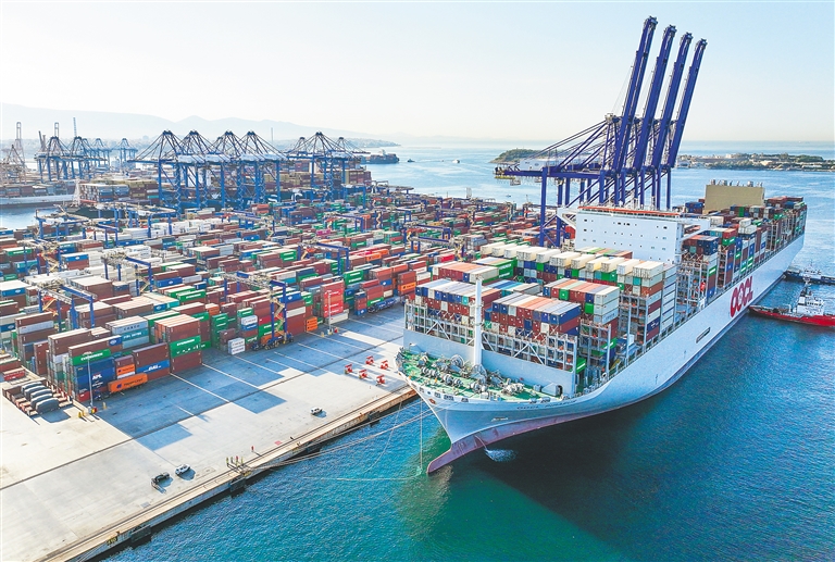 7月10日,“东方比雷埃夫斯”号大型集装箱船抵达希腊最大港口比雷埃夫斯。