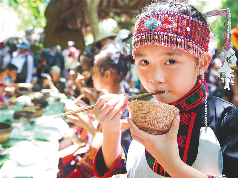 除了看花,还可以走进原生态的黎村苗寨去体验一场“三月三”盛会。“三月三”是黎族苗族人民的传统节日,是他们悼念祖先、庆贺新生、赞美生活、歌颂英雄和歌颂爱情的传统佳节。节日当天,黎族苗族同胞穿上盛装,带着山栏米酒、竹筒饭和粽子,从四面八方来到集会点祭祀始祖。夜晚则燃起篝火,年长者聚饮叙旧,青年男女相会对歌表达爱情。