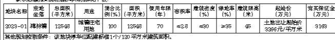 二、竞买事项:(一)竞买人资格:凡属中华人民共和国境内外的自然人、法人和其他组织(除法律另有规定者外)均可申请参加竞买。申请人单独申请,不接受联合申请。境外法人和其他组织(含港、澳、台地区)申请参加的,应当提供境外公证部门的公证书、商务主管部门核发的《外商投资企业批准证书》和市场监管部门核发的《营业执照》。境外申请人按照上述规定提交的有效身份证明及其他相关文件,应由所在国公证机关予以证明并经中华人民共和国驻该国使领馆认证;香港地区申请人按照上述规定提交的有关文件,应按规定经中华人民共和国司法部授权的香港律师公证并由中国法律服务(香港)有限公司审核签章转递并附以附件确认本。澳门、台湾地区比照香港地区执行。具有下列行为的自然人、法人和其他组织不得参加本次国有建设用地使用权挂牌出让:1.失信的被执行人,被列入经营异常名录或者严重违法企业名单的当事人。2.有重大税收违法案件的当事人。3.在陵水黎族自治县范围有拖欠土地出让金行为,并未及时改正的。4.在陵水黎族自治县有因自身原因导致土地闲置、违法利用农村集体土地建设商品住房、擅自改变土地用途等非法占地、违法建设等违法行为的行为人。竞买申请时间:2023年7月13日09时00分至2023年8月11日12时00分(以网上交易系统服务器时间为准,下同)。(二)保证金及付款方式:竞买保证金:竞买人应交纳的竞买履约保证金为3163万元人民币。缴纳方式一:竞买人在网上交易系统提交竞买申请时,应选定一家银行交纳竞买保证金,选定银行后系统自动生成唯一的随机竞买保证金账号,保证金交纳银行一经选定不能更改,竞买人应谨慎选择。竞买人须按照出让手册的有关规定将竞买保证金足额交入该账号(竞买保证金到账时间以银行信息系统入账时间为准)。本次竞买保证金的币种为人民币,不接受外币。竞买保证金应不属于银行贷款、股东借款、转贷和募集资金所得,并出具承诺。缴纳方式二:根据2022年9月29日海南省自然资源和规划厅印发的《关于海南省土地交易市场竞买保证金可使用银行保函的通知》精神,该宗地可采用银行保函方式缴纳土地竞买保证金。竞买保证金到账截止时间为:2023年8月11日12时00分。(三)资格确认:竞买资格审核开始后,出让人在2个工作日内、资格审核截止时间前完成竞买申请文件审核。竞买人提交竞买申请时应充分考虑网上交易活动的竞买资格审核时效,并进行审慎注意。竞买人的竞买申请文件审核通过,且竞买保证金已按要求交纳的,网上交易系统自动发放《竞买资格确认书》,确认其获得竞买资格。竞买资格审核时间:2023年8月2日09时00分至2023年8月11日12时00分。
