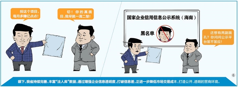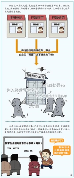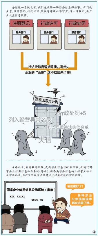 目前,海南正逐步实现对企业的全景精准画像,为企业上市、政府采购、工程项目招投标、企业融资等资格审查和评定活动提供重要依据,并为实施企业信用分类分级监管工作提供数据支持,实现监管工作差异化和精准化。