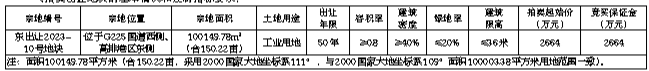 二、拍卖竞买人报名条件:(一)中华人民共和国境内外的法人、自然人和其他组织,除法律法规另有规定者外,均可参加竞买(注:失信被执行人不得参加本次竞买)。属境外机构(含港、澳、台地区)申请参与竞买的,按照规定需提交商务主管部门核发的《外商投资企业批准证书》和工商主管部门核发的《营业执照》。本次拍卖出让地块不接受联合竞买;必须在拍卖出让公告规定的时间内把竞买保证金存入东方市自然资源和规划局指定账户(以拍卖竞买保证金入账户时间为准)。(二)具有下列行为的法人及其控股股东和其他组织不得参加本次土地出让拍卖:1.在东方市范围有拖欠土地出让金行为,并未及时改正的。2.在东方市有违法利用农村集体土地建设商品住房、擅自改变土地用途等违法行为,并未及时纠正的。3.在东方市范围有非法占地、违法建设行为的。4.具有伪造公文骗取用地和非法倒卖土地或非法转让土地使用权或因企业原因造成土地闲置一年以上等违法违规违约行为且尚未结案或查处整改的。三、宗地开发建设要求:(一)该宗地拟建项目为高新技术产业,出让控制标准投资强度为 240 万元/亩,年度产值指标为 190 万元/亩,年度税收指标为 11 万元/亩。(二)项目达产时间为签订《国有土地使用权出让合同》后的3年内。(三)项目建成后,在同等条件下优先招录被征收集体经济组织成员共计16人。招录条件按人事劳动部门规定执行,同工同酬并遵照竞得方规章制度管理。(四)该宗地若实施装配式建筑,应按装配式建筑有关规定执行。上述开发建设要求将列入《海南省产业项目发展和用地准入协议》。土地竞得人在签订《国有建设用地使用权出让合同》的同时,与市工业科技信息化局签订《海南省产业项目发展和用地准入协议》。四、竞买咨询及报名期限:本次拍卖出让的详细信息和具体要求,见拍卖出让手册及其他相关文件。有意向的竞买人登录海南省建设用地使用权和矿业权网上交易系统(以下简称网上交易系统,网址:http://lr.hainan.gov.cn:9002)查看打印和提交竞买申请,按要求上传竞买申请文件。不接受电话、邮寄、书面、口头等其他形式的申请。竞买申请时间:2023年7月14日8时30分至2023年8月3日17时00分。竞买保证金缴纳截止时间:2023年8月3日17时00分。五、资格确认:经审核,申请人按规定交纳竞买保证金,具备申请条件的,我局将在2023年8月3日17时30分前确认其竞买资格,网上交易系统自动发放《竞买资格确认书》。六、拍卖时间及地址:网上拍卖时间:2023年8月4日10时00分。网上拍卖地址:海南省建设用地使用权和矿业权网上交易系统(网址:http://lr.hainan.gov.cn:9002)。七、其他事项:(一)该宗地土地权属清晰、安置补偿落实到位、地上附着物清表、无法律经济纠纷、土地开发利用规划条件明确、符合土壤环境质量要求、具备动工开发所必需条件。不涉及国家安全、净空保护区域、气象环境探测保护范围、土壤环境、历史文化保护、文物保护单位等敏感因素影响。(二)确定竞得人后,竞得人与市自然资源和规划局当场签订《成交确认书》,并在30日内签订《国有建设用地使用权出让合同》,按照合同约定支付土地出让金,依法申请办理土地登记。(三)拍卖地块以现状土地条件出让,本次拍卖出让事项如有变更,以届时变更公告为准。(四)上述所有时间均为北京时间。本公告未尽事宜详见《东方市国有建设用地使用权拍卖出让手册》,该手册所载内容为本公告的组成部分。八、咨询方式:联系人: 郭女士 熊先生;联系电话:0898-25585295、17763898105;查询网址:http://www.landchina.com/;http://zw.hainan.gov.cn/ggzy/;http://lr.hainan.gov.cn。