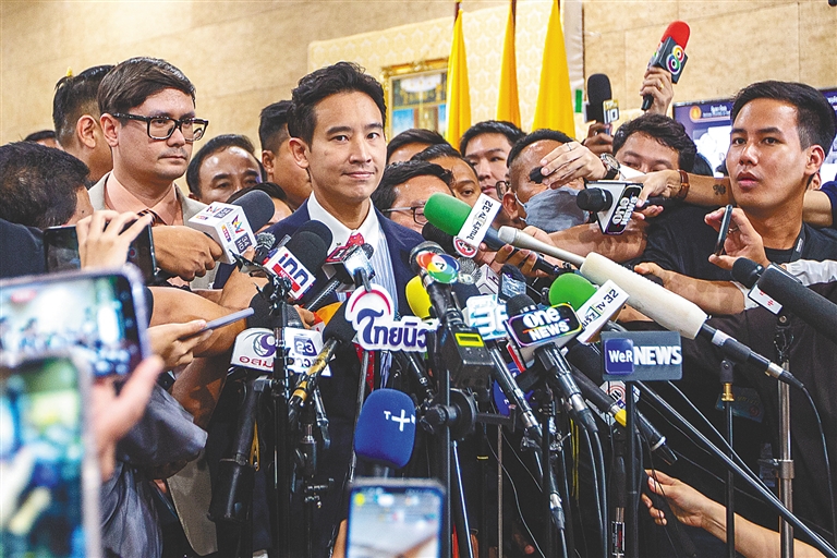 泰国新一届国会13日举行首次上下两院联席会议,因唯一获提名的总理候选人、远进党党魁皮塔·林乍伦拉未能获得过半数议员支持,致使国会未能选出新总理。新华社记者 王腾 摄
