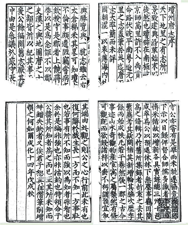 另一个标志是,明代前半期的地方志也是一派繁花硕果,截至1521年《琼台志》问世时,共完成全岛性地方志六部,其余五部为明初蔡微的《琼海方舆志》(先后三版)、永乐和成化两部《琼州府志》(以下分别简称为“永乐志”和“成化志”)、临高举人王佐的《琼台外纪》,以及1456年成书的景泰《琼州府志》(简称“景泰志”),皆已散佚。算来平均每25年就涌现一部全岛方志,密度之高,史上仅有。至于州县志,如《郡城志》《会同志》《崖志》《儋志》等,就更多了。