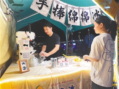 “老板,来份绵绵冰。”点单、接单,王勇贤的档口前,客人渐渐多了起来。