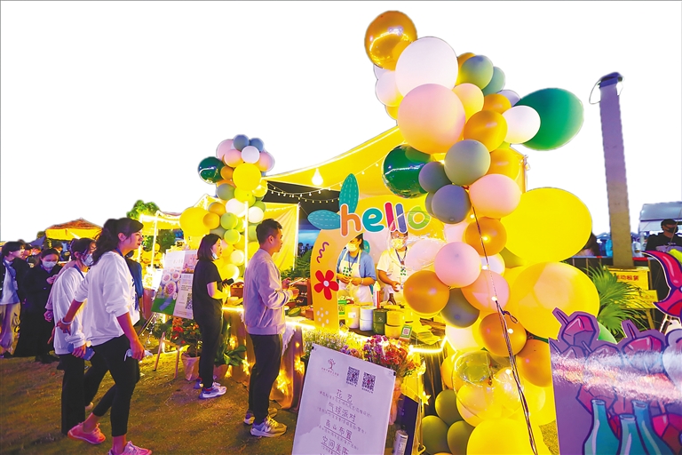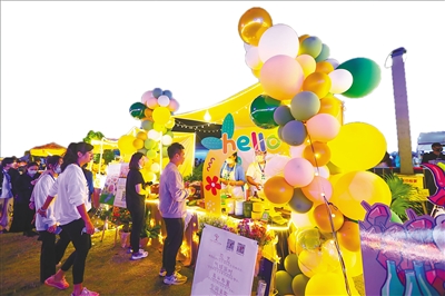 明灿灿的灯光下,一个个档口整齐排列,放眼望去皆是潮流文化元素。在这个可容纳千人狂欢的户外大型互动空间里,食客们可以在逛夜市、品美食的同时,领略东南亚风情,感受非遗文化的魅力。