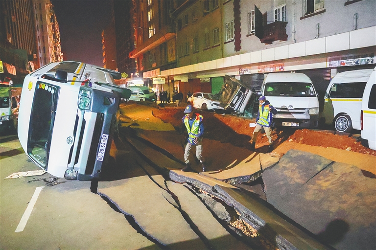 南非最大城市约翰内斯堡19日晚高峰时段发生一起疑似地下管道爆炸事件,路面炸裂,掀翻20多辆汽车,41人受伤,其中多人重伤。