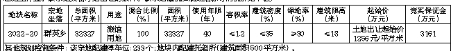 二、竞买事项:(一)竞买人资格:凡属中华人民共和国境内外的自然人、法人和其他组织(除法律另有规定者外)均可申请参加竞买。申请人单独申请,不接受联合申请。境外法人和其他组织(含港、澳、台地区)申请参加的,应当提供境外公证部门的公证书、商务主管部门核发的《外商投资企业批准证书》和市场监管部门核发的《营业执照》。境外申请人按照上述规定提交的有效身份证明及其他相关文件,应由所在国公证机关予以证明并经中华人民共和国驻该国使领馆认证;香港地区申请人按照上述规定提交的有关文件,应按规定经中华人民共和国司法部授权的香港律师公证并由中国法律服务(香港)有限公司审核签章转递并附以附件确认本。澳门、台湾地区比照香港地区执行。具有下列行为的自然人、法人和其他组织不得参加本次国有建设用地使用权挂牌出让:1.失信的被执行人,被列入经营异常名录或者严重违法企业名单的当事人。2.有重大税收违法案件的当事人。3.在陵水黎族自治县范围有拖欠土地出让金行为,并未及时改正的。4.在陵水黎族自治县有因自身原因导致土地闲置、违法利用农村集体土地建设商品住房、擅自改变土地用途等非法占地、违法建设等违法行为的行为人。竞买申请时间:2023年 7 月 21日09时00分至2023年 8 月 21 日12时00分(以网上交易系统服务器时间为准,下同)。(二)保证金及付款方式:竞买保证金:竞买人应交纳的竞买履约保证金为3161万元人民币。缴纳方式一:竞买人在网上交易系统提交竞买申请时,应选定一家银行交纳竞买保证金,选定银行后系统自动生成唯一的随机竞买保证金账号,保证金交纳银行一经选定不能更改,竞买人应谨慎选择。竞买人须按照出让手册的有关规定将竞买保证金足额交入该账号(竞买保证金到账时间以银行信息系统入账时间为准)。本次竞买保证金的币种为人民币,不接受外币。竞买保证金应不属于银行贷款、股东借款、转贷和募集资金所得,并出具承诺。缴纳方式二:根据2022年9月29日海南省自然资源和规划厅印发的《关于海南省土地交易市场竞买保证金可使用银行保函的通知》精神,该宗地可采用银行保函方式缴纳土地竞买保证金。竞买保证金到账截止时间为:2023年 8月 21 日12时00分。(三)资格确认:竞买资格审核开始后,出让人在2个工作日内、资格审核截止时间前完成竞买申请文件审核。竞买人提交竞买申请时应充分考虑网上交易活动的竞买资格审核时效,并进行审慎注意。竞买人的竞买申请文件审核通过,且竞买保证金已按要求交纳的,网上交易系统自动发放《竞买资格确认书》,确认其获得竞买资格。竞买资格审核时间:2023年8月10日09时00分至2023年8月21日12时00分。
