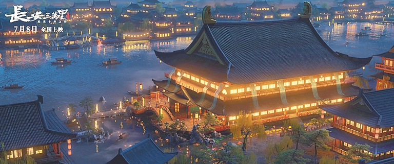 全片用动画形式呈现了大唐盛世多地盛景,其中,在塑造繁花似锦的长安城景象时,主创团队多次在西安实地采风。“天地一逆旅,同悲万古尘”“黄鹤一去不复返,白云千载空悠悠”……当穿越千年的诗句透过银幕与观众相遇,长安的繁华气派、梁园的田园风光、扬州的温柔妩媚、塞北的苍凉辽阔,与回响在历史深处的吟诵一齐唤醒了观众骨子里的文化基因。