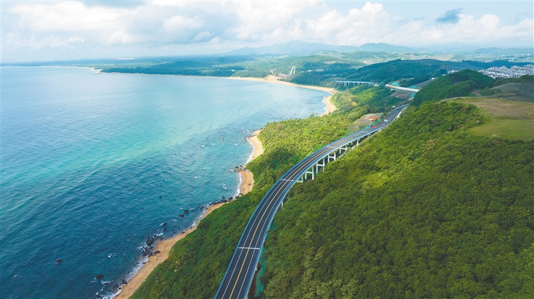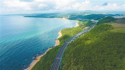 7月23日,俯瞰海南环岛旅游公路万宁正门岭大桥段。