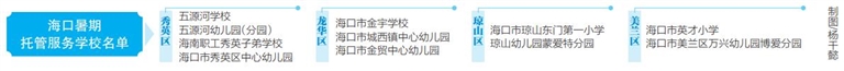 根据海口市教育局通知,该市从今年7月24日至8月18日,在11所学校和幼儿园,面向有托管需求的小学生或在园幼儿开展暑期托管服务。