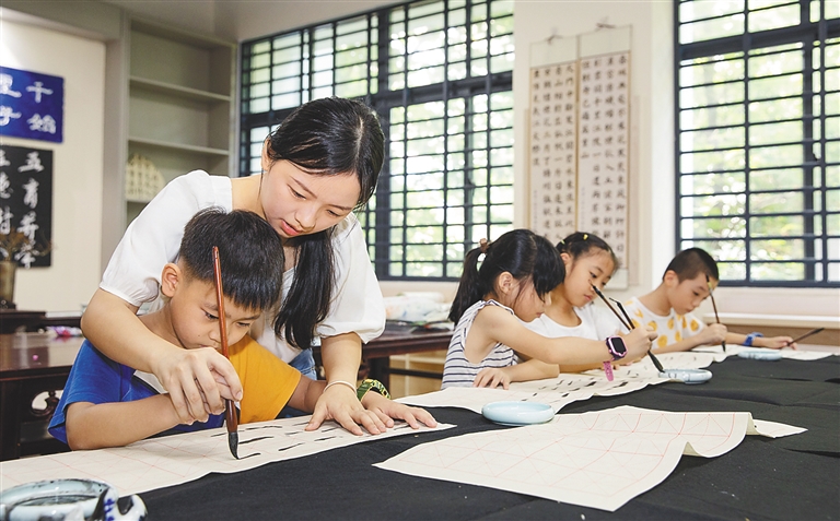 “学校被确定为暑期托管试点学校后,立即通过发放问卷调查,对有意向报名参与暑期托管的学生和老师人数进行摸底。最终有近80多名学生报名,以本校学生为主,也有部分外校学生。”海口市五源河学校教师祁欣告诉记者。