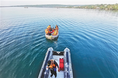 7月24日,救援人员在印度尼西亚苏拉威西省附近海域搜救沉船事故幸存者。