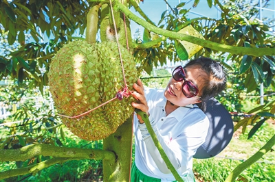 中国热带农业科学院热带作物品种资源研究所副研究员周兆禧说,与东南亚同品种进口产品相比,海南目前成熟的金枕榴莲能够实现“树上熟”,积累养分、风味更丰富。