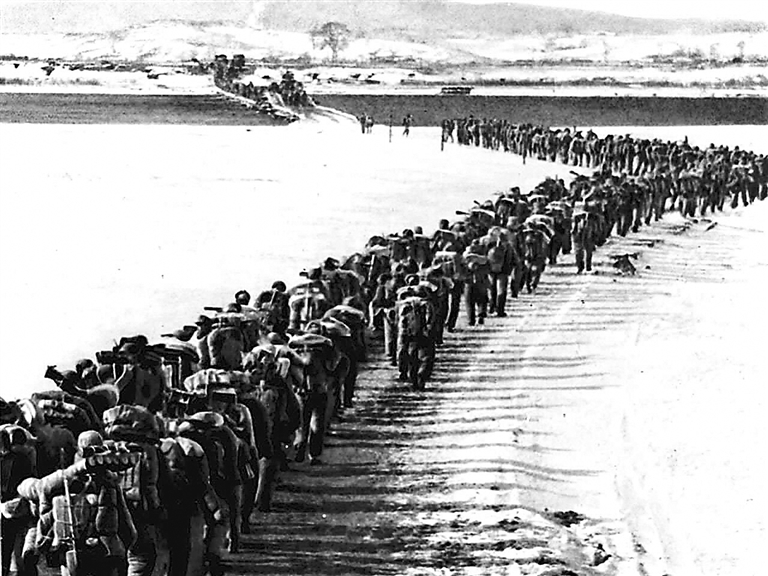 “我们一过了江,就往东北方向走,一晚上走七八十里路。”曾任志愿军40军120师359团1营1连指导员的王凤和回忆。