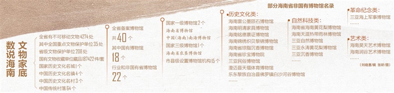 文物是文化的载体。目前,海南共有不可移动文物4274处,国有文物收藏单位藏品187422件/套,多少海南故事藏于其中。