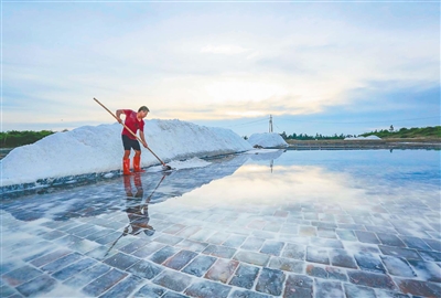 晒盐是一门古老的技艺,莺歌海老盐晒制技艺已于2022年入选第五批乐东县级非物质文化遗产代表性项目名录。一把老盐,能有何作为?答案是:盐饮料+盐旅游。目前,海南已有许多饮料连锁店推出老盐系列饮料,比如由新鲜水果和老盐“混搭”的老盐柠檬水、老盐菠萝水、老盐葡萄汁等,还有企业研发了更有利于物流运输和线上交易的老盐冻干水果茶。旅游方面,莺歌海盐场借助“盐产品+盐文化”两条腿走路,吸引年轻游客到盐田附近观光、拍照,成为小红书、抖音等平台上的人气景点。