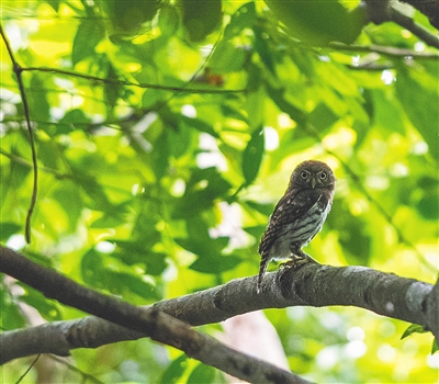 作为夜间猎食的动物,猫头鹰同样具有非常敏锐的视觉,它们能够在黑暗中看到微弱的光线。猫头鹰的眼睛位于面部的正前方,这使得它们在捕猎过程中具有出色的深度感知能力,加之猫头鹰的瞳孔很大,而视网膜中的视杆细胞非常丰富,但不含有视锥细胞,因此眼内呈现圆柱状,对弱光也有很好的敏感性,特别适合在夜间活动,这也是它们成为夜间猎手的重要因素之一。