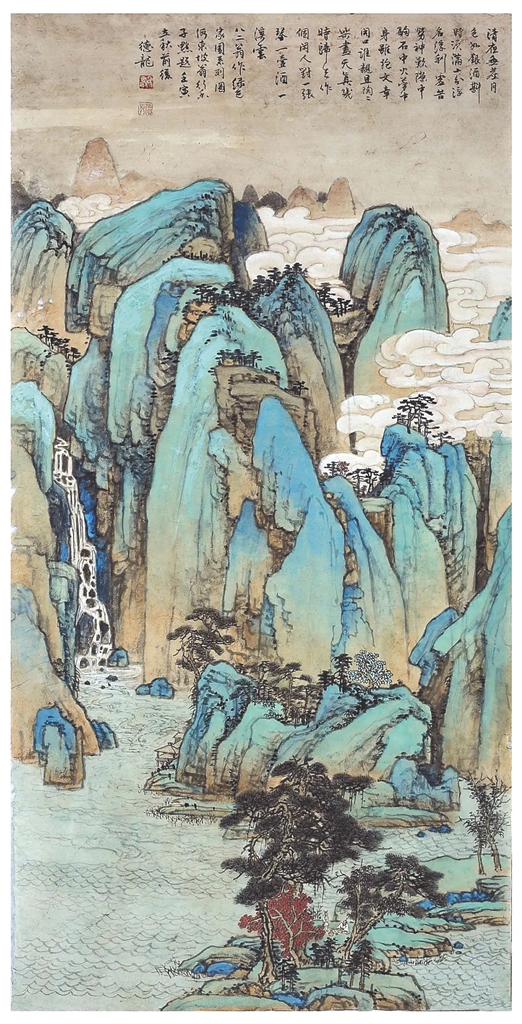 作为一种古老且经历过相当阶段沉寂的绘画样式,青绿山水如何切入当代,众多画家已从不同方向、不同载体做了许多富有特色的学术探索。乔德龙的山水画作,以山川魂魄的力度美感,赋予青绿山水一种古韵隽美,画中的雄浑山势和波澜水态,映射出其内在风骨和精神品位。同时,他用传统线描的多重勾勒,去表达内心厚实雅致的情感内涵;以青绿赋色让人心田浸润,绘云雾之变而通灵动之气,以万象之变展千年山水的法度之美。