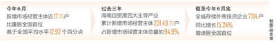 截至今年6月底,我省市场经营主体同比增长51.48%,增速已连续40个月保持全国第一,高于全国41.37个百分点,总量实现历史性突破。这是海南日报记者日前从省市场监管局获悉的。