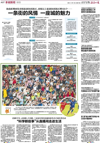 前不久,儋州市海花岛·环海艺术美食街、定安县丁湖路田园社区文化旅游街区新晋成为我省第二批省级旅游休闲街区。至此,我省省级、国家级旅游休闲街区已有6个。当下,旅游休闲街区逐渐成为城市新的文化名片,许多游客因为一条街奔赴一座城,如何更好地利用旅游休闲街区培育文旅新业态、促进文旅新消费,成了文旅融合和城市更新的新命题。