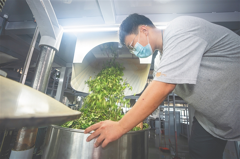 海南农垦茶业生态科技园生产车间里,自动化生产线正在忙碌运转。“从白天到晚上,我们的机器不停,茶青一摘下就被送往生产线,一刻不耽误。”海垦白马岭公司生产质量部部长梁开华介绍。