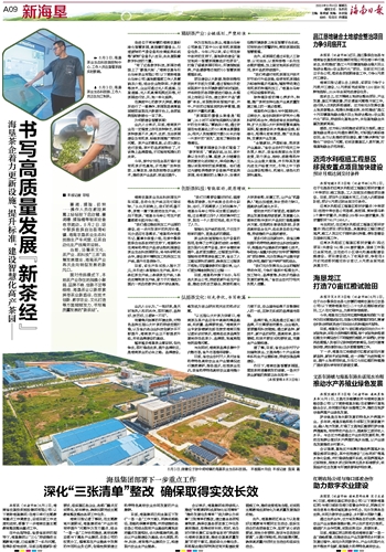 面对传统模式下,本地茶产业存在的规模小散弱、品牌不响、创新不足等桎梏,海垦茶企以新思索探寻茶业新路径,在技术创新、数字农业、文化打造等方面频频发力,书写高质量发展的“新茶经”。