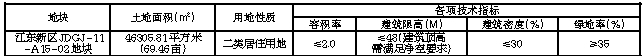 经海口市人民政府批准,海口市自然资源和规划局决定以挂牌方式出让一幅海口市江东新区JDGJ-11-A15-02地块的国有建设用地使用权。现将有关事项公告如下:一、出让宗地的基本情况和规划指标要求。(一)基本情况及宗地净地情况。本次挂牌出让的用地位于海口市江东新区JDGJ-11-A15-02地块,土地面积为46305.81平方米(合69.46亩),土地用途为城镇住宅用地,出让年限70年,用于建设安居房项目。目前该地块安置补偿落实到位、地上附着物已清表、土地权利清晰、无法律经济纠纷、土壤无污染,具备动工开发必需的条件。(二)主要规划指标。海口市江东新区JDGJ-11-A15-02地块用地的规划指标情况详见下表: