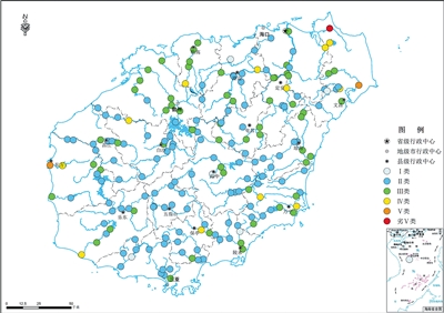 全省地表水水质总体为优,192个1省控监测断面(点位)的水质优良(Ⅰ~Ⅲ类)比例为92.2%,同比下降2.1个百分点;劣Ⅴ类比例为0.5%,同比持平。19个市县中,文昌市水质轻度污染,东方、儋州、万宁、海口等4个市县水质良好,其余市县水质为优。