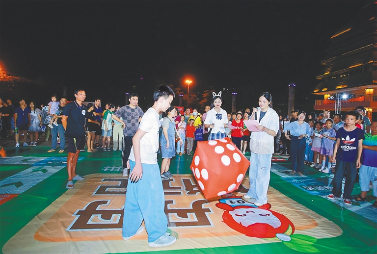 首个游戏是“红丹丹”旅行记。在本届文化节正式启动前,“红丹丹”就先后前往海南4地开展“区域快闪”活动,提前为文化节造势预热,这场寻味之旅令人印象深刻。当晚的游戏中,七仙广场上绘制了“红丹丹”旅行记游戏地图,市民游客将循着“红丹丹”的足迹玩转保亭。