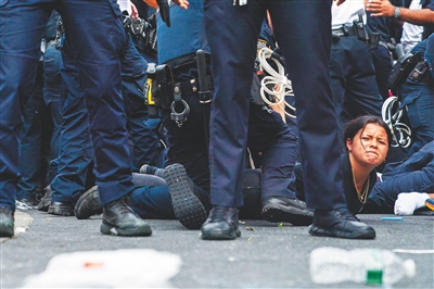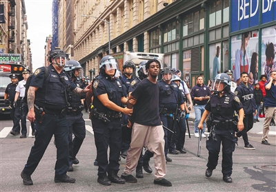 纽约市警察局长杰弗里·马德里在新闻发布会上说,一些人对警察和公众实施暴力行为。“我们的警察遭到袭击。我们被挤、被推。”
