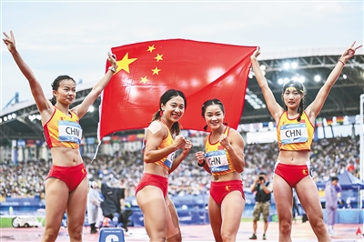 当天,田径项目产生14枚金牌,男、女半程马拉松赛、男子跳远、男子800米、女子1500米等多个项目决定冠军归属。其中最受关注的是晚间进行的男、女子4×100米接力决赛,中国男、女队出战均夺取金牌。中国男子接力队最后一棒后来居上,全队以千分之六秒逆转胜出,尤为惊心动魄。