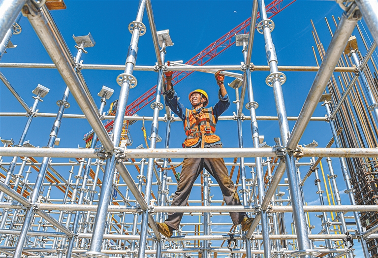 目前,该项目建设稳步推进,4栋建筑完成主体封顶,预计明年10月底竣工。