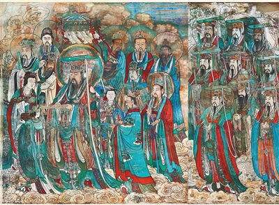 《封神》中的元始天尊和十二金仙衣袂飘舞、超脱物外。电影主创团队称这些仙人装扮曾取材于永乐宫三清殿的元代壁画。尤其是元始天尊和十二金仙的彩虹色背光,与壁画中南极长生大帝后面的背光几乎一样。