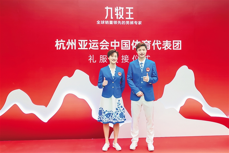 8月15日,杭州亚运会中国体育代表团开幕式礼服“星耀”交接仪式在北京举行。