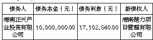 海南汇通国际信托投资公司已将对下列债务人享有的债权(包括本金、利息)转让给以下新债权人,请债务人向新债权人履行还款义务。