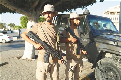 8月16日,安全人员在利比亚首都的黎波里警戒。