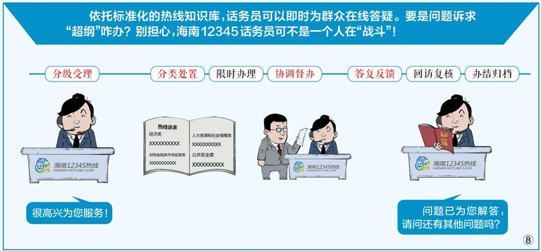 海南12345热线是全国首个由省级政府运行的热线,自2016年上线运行以来,不断完善体制机制,创设性地提出了“五统一”的建设理念和“2+3”的标准体系,使全省热线发展从省级到市县、到链接群众“最后一公里”的村(社区)等各级平台都有了统一规范的参照模板,在资源节约、建设效率、服务质效方面都得到了全面保障。