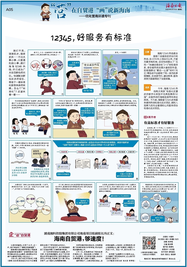 无规矩不成方圆,“无标准难保服务质量”。海南12345热线从受理、处置,到督办、反馈,环环都有标准。有高标准才能保证好服务。随着热线工作省级标准体系的不断完善,相信海南自贸港营商环境会更优,群众获得感、幸福感会更强。