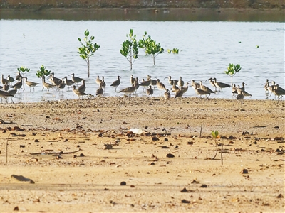 近年来,海南农垦西联农场公司以生态自然修复为主,在该湿地公园勇作生态“加减法”,通过退塘还林、还湿等举措减少污染,实施勺嘴鹬等小型鸻鹬类栖息地营造、裸滩湿地恢复、生境塘建设等措施,推动候鸟种群数量不断上升,目前已达194类。