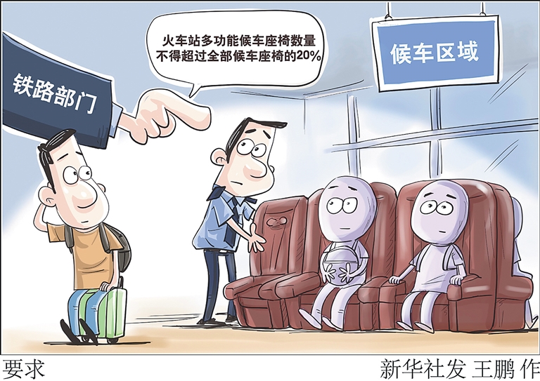 铁路部门要求,一是合理布设,便利旅客出行。对设置多功能候车座椅的车站,必须确保候车区域旅客候车座椅总数不减少,多功能候车座椅数量不得超过全部候车座椅的20%,并在各候车区分散均衡设置,不得影响旅客候车、通行。二是加强检查维护,改善旅客体验。定期开展用电安全检查、卫生保洁和消杀灭等工作,确保多功能候车座椅作用状态良好。在多功能候车座椅区域醒目位置规范设置“免费就座、扫码按摩”标识,并公布服务监督电话。三是全面排查整改,依法合规经营。8月底前,组织开展全面排查整顿,对多功能候车座椅数量、规格、布局、状态、卫生不符合要求的,限期整改到位。对客流量大且候车面积不足的车站,进一步压减多功能候车座椅比例和数量。
